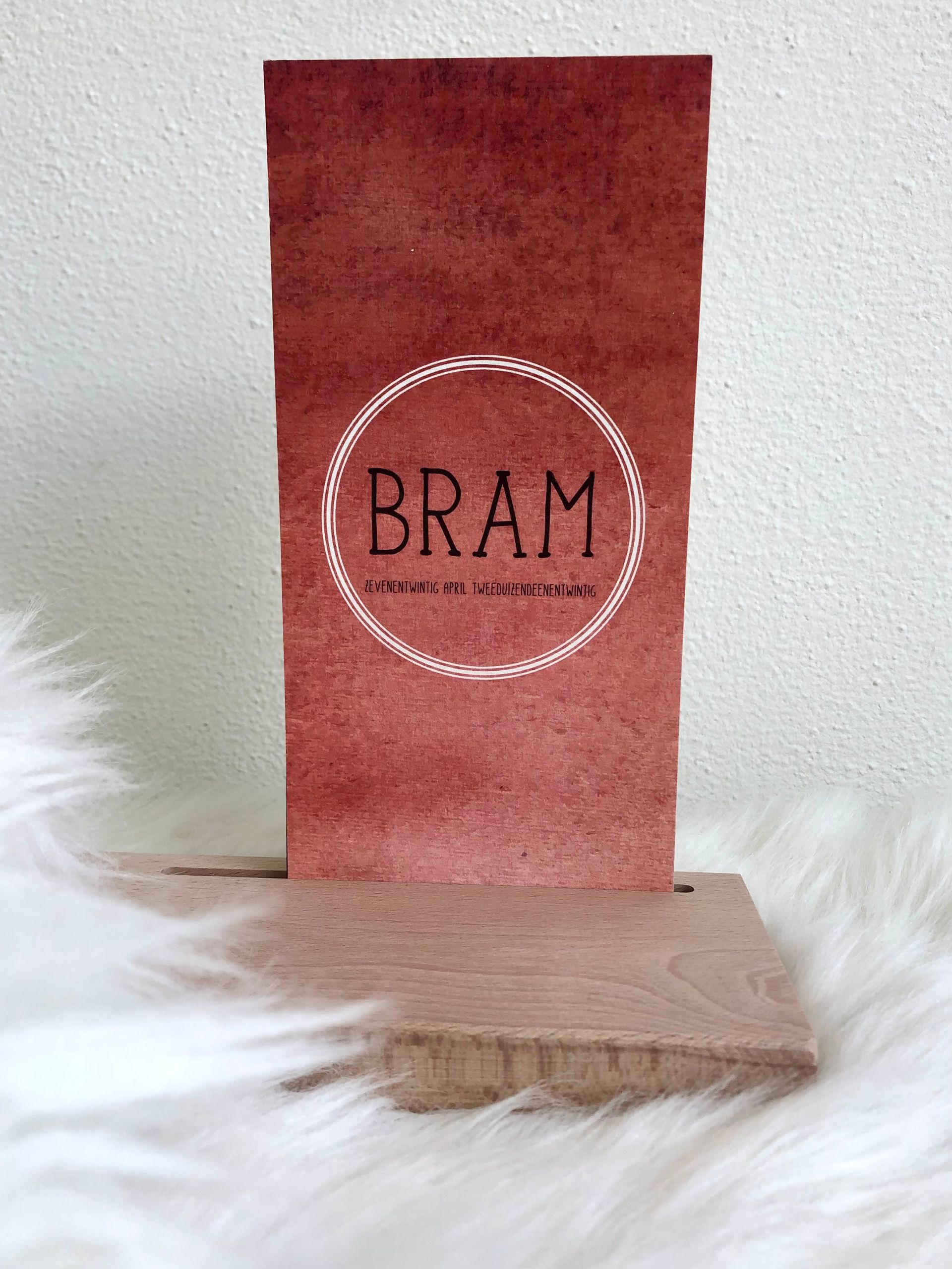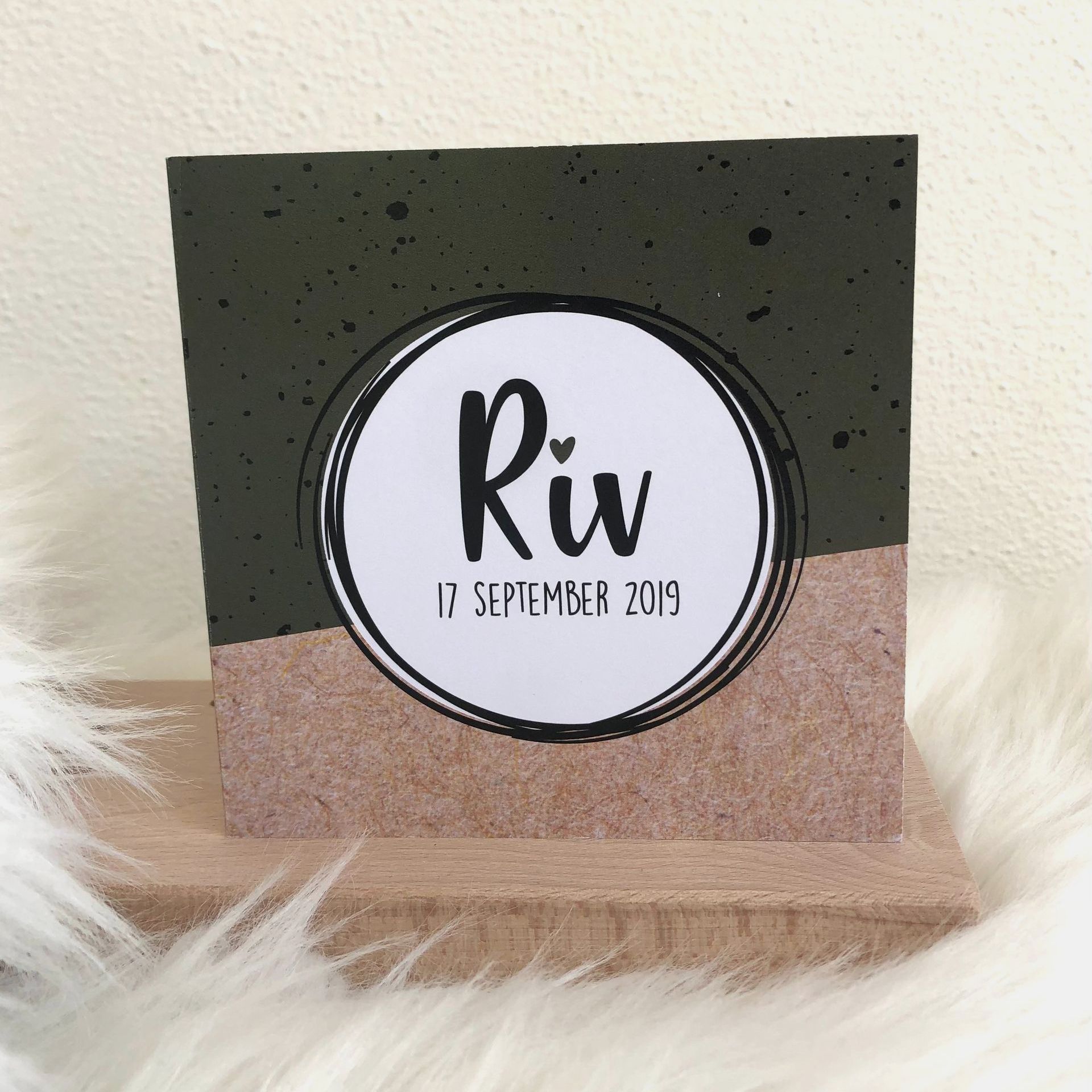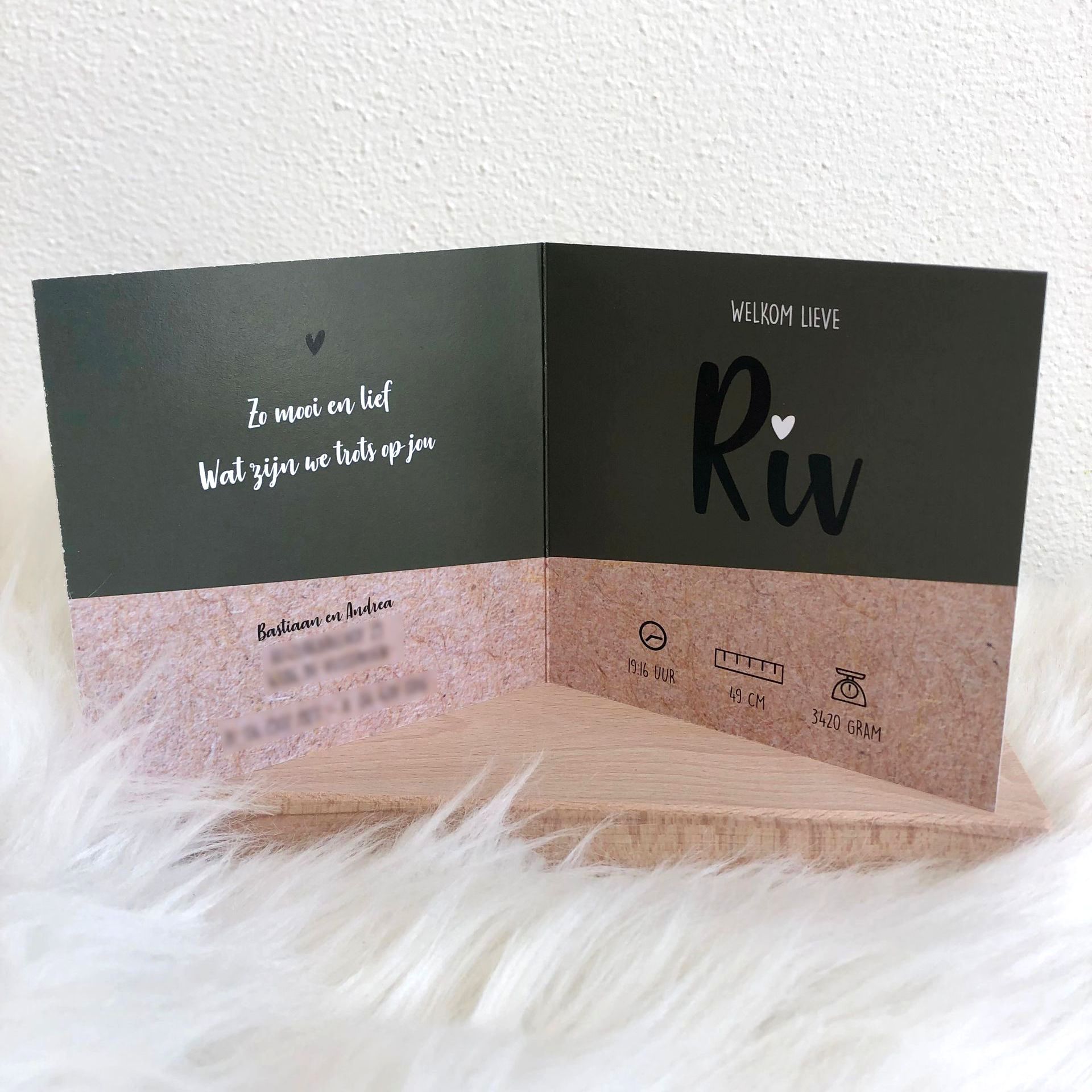 Stijlvol langwerpig geboortekaartje voor een jongen met terrakleurige waterverf. Een prachtige variant op het geboortekaartje van Tom. Superleuk om dezelfde kaart te gebruiken voor het broertje maar dan in een andere kleur, toch net even anders.